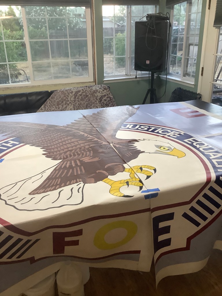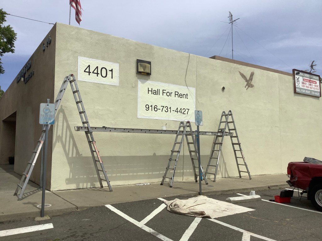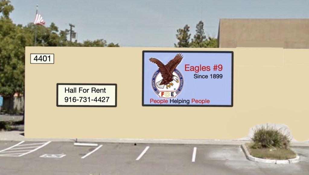 Located at 4401 Fruitridge Rd, Eagles #9 event hall hosts dances and events. The community wanted an image that would attract attention from the road. Eagles image size is 16′ x 8′, Acrylic on 8, 4 foot Polytab panel (2022)
